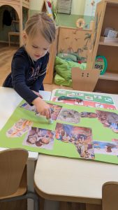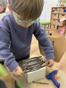 Im Rahmen unseres Projekts haben die Kinder vieles über Tiere im Winterwald gelernt. Bei den Vögeln haben wir verschiedene Arten kennengelernt, das Federkleid genauer betrachtet und besprochen, wie sie Nester bauen und Eier legen. Vogelsuchspaziergänge sowie der Bau unseres eigenen Kindernestes waren dabei ein besonderes Highlight. Auch der Fuchs hat uns fasziniert: Die Kinder erfuhren, dass er in einem Bau lebt, was er frisst, wann er schläft und wie er sich an die kalte Jahreszeit anpasst. Ein Höhepunkt war der erste Schnee, bei dem wir Tierspuren entdeckt und den Winter hautnah erlebt haben. So konnten die Kinder ihr Wissen über Tiere erweitern, die Natur bewusster wahrnehmen und gemeinsam spannende Entdeckungen machen.